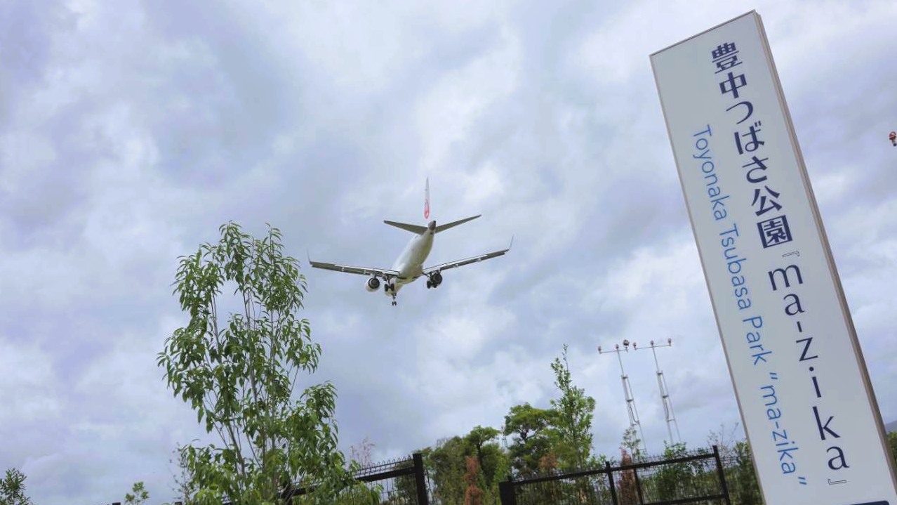 空港に着陸する飛行機を「間近」に「マジか!」と見れる 「豊中つばさ公園『ma-zika』」 です。